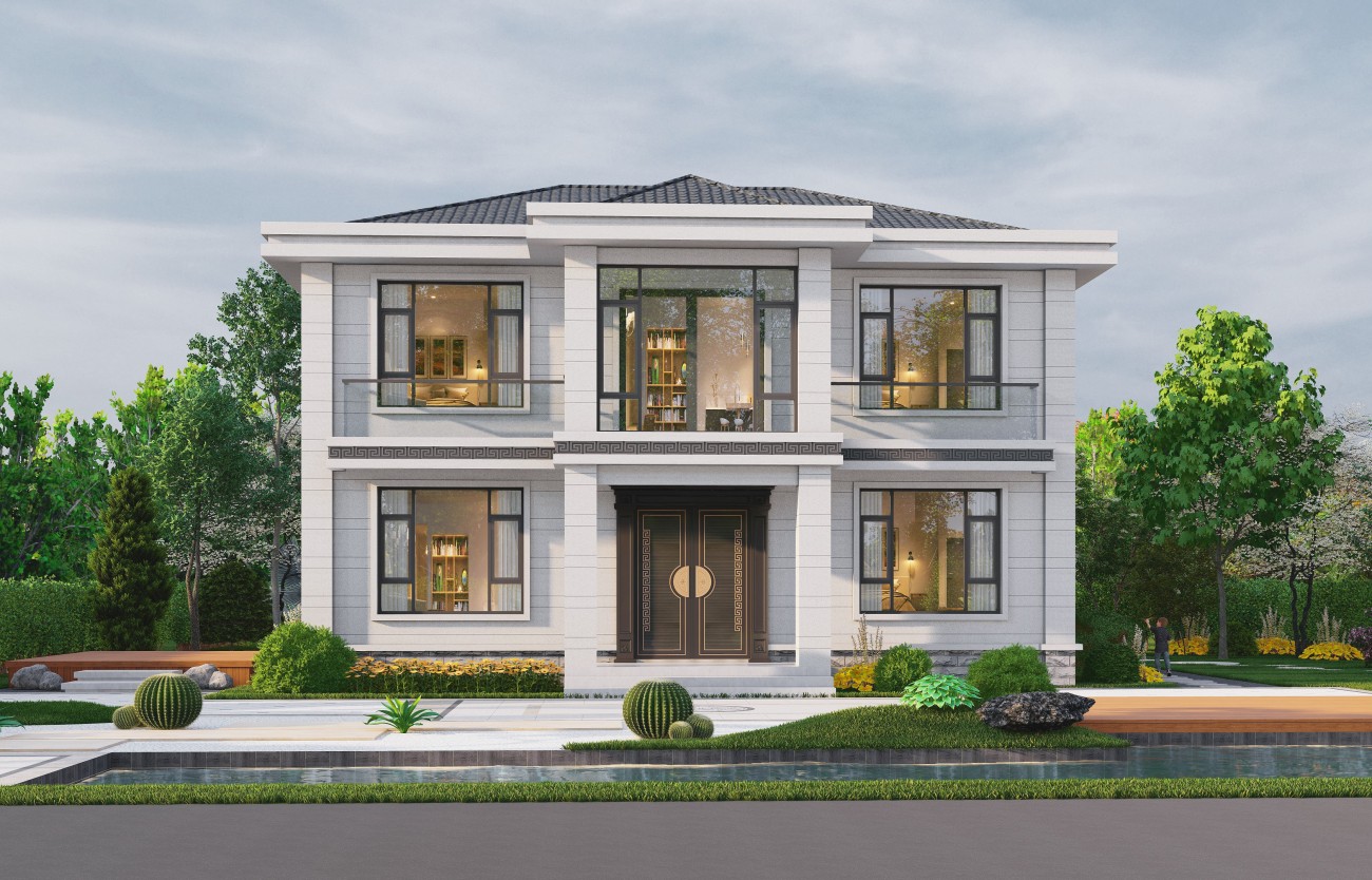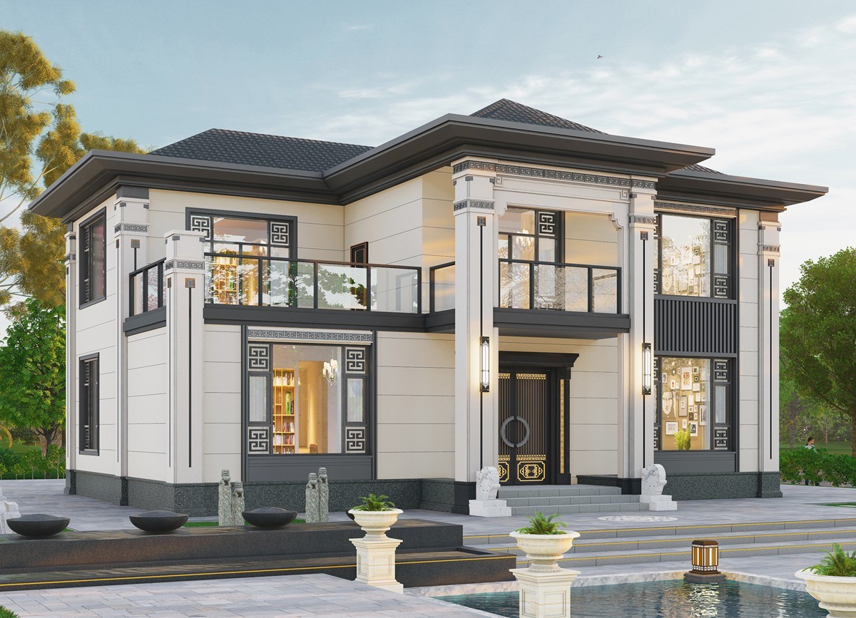 咸宁005 两层新中式(11.36x11.76米)-【易设计】